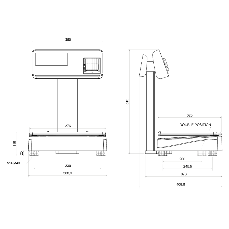 | GPEATH1530 | GPE ATHENA scale, 15/30 kg capacity, 5/10g division, with ABS structure and stainless steel 370x310mm plate, with double white backlit LCD display, waterproof keyboard consisting of 62 PLU/function membrane keys and thermal printer integrated on column. |